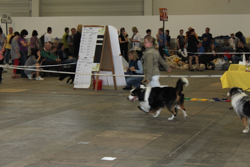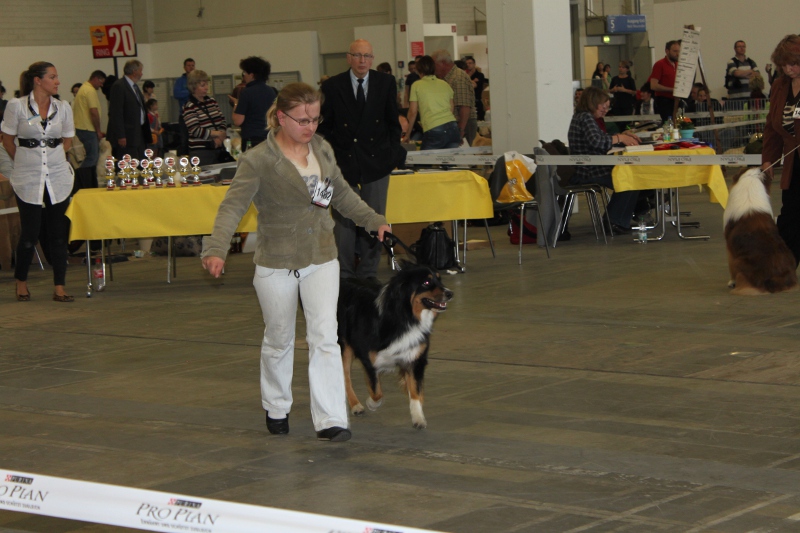 Heute war ih mit Frauchen und einer Freundin von Frauchen auf der internationalen Ausstellung Leipzig. Dort hab ich so einige Verwandtschaft getroffen, wie meine Mama, zwei Halbschwestern, Lara + Joana und einen Halbbruder, der Cosmo. Um neun Uhr ging das richten los. Bei uns in der Klasse waren insgesamt 7 Rüden. Ganz schön viel kann ich euch sagen. Ich musste eine weile warten, bis ich dran war. Ich hab dem Richter erstmal ein Küsschen gegeben...hihi. Ich musste brav Zähne zeigen und ein paar mal laufen. Auch wurde mein schönes Fell angeschaut. Wir wurden dann mit einem SG bewertet. Frauchen war sehr stolz auf mich, dass ich so ruhig und lieb war, denn im Ring knurrte mich andauernd ein Konkurrent an. Das hat mich aber nicht beeindruckt, ich blieb ganz cool und souverän. Ein paar Lecker und auch Spielzeug gab es zur Belohnung. Bilder wurden auch gemacht, die kommen dann später. Meine Halbschwester Lara war auch bei und hat ein V1 bekommen. Glückwunsch Schwesterchen.